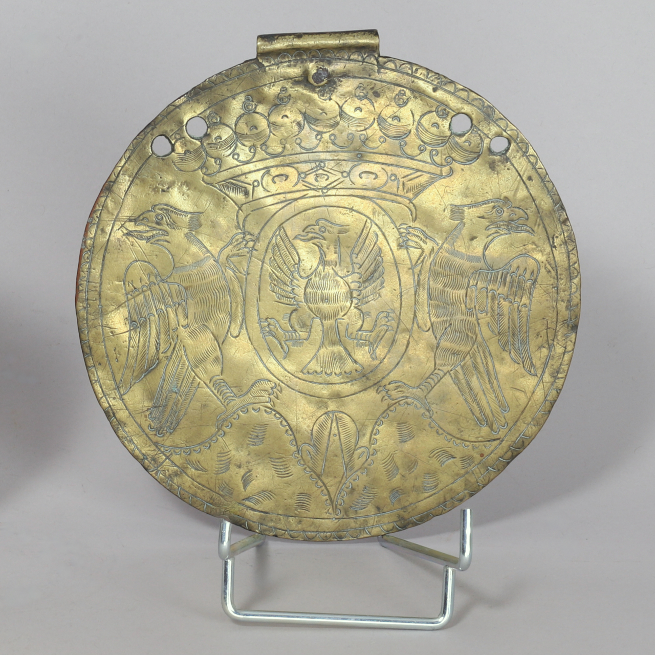 Étiquettes : aigle, couronne, laiton doré, Plaque décorative, plaques muletières, XVIIIe siècle