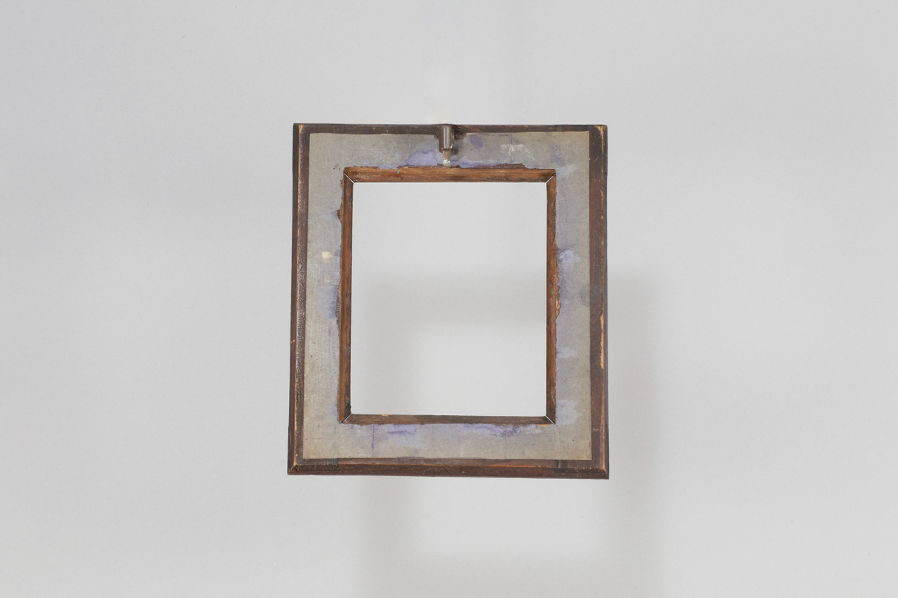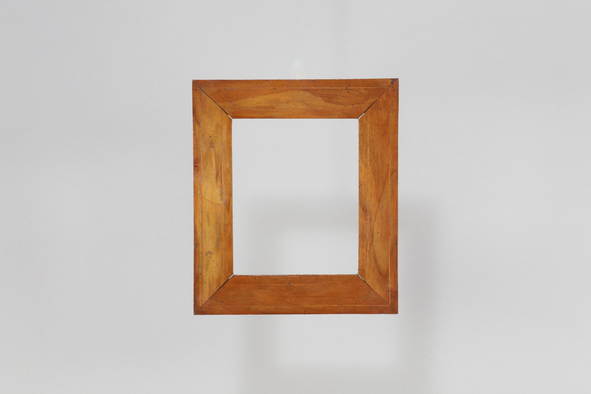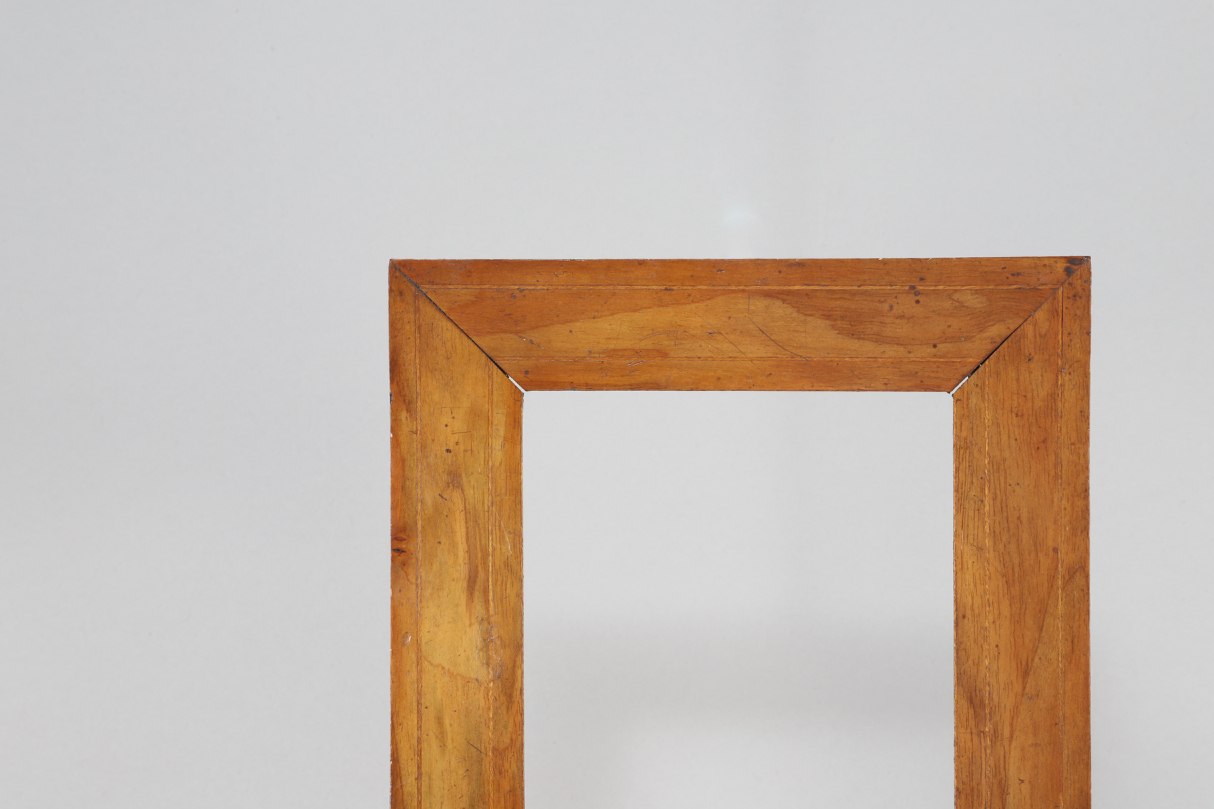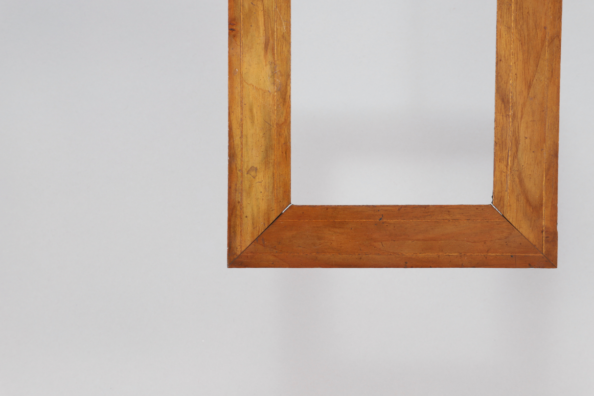 Un cadre à baguettes en noyer du XIXe siècle. Un décor discret présente deux filets incrustés en bois clair. Le montage est réalisé selon la technique à mi-bois.