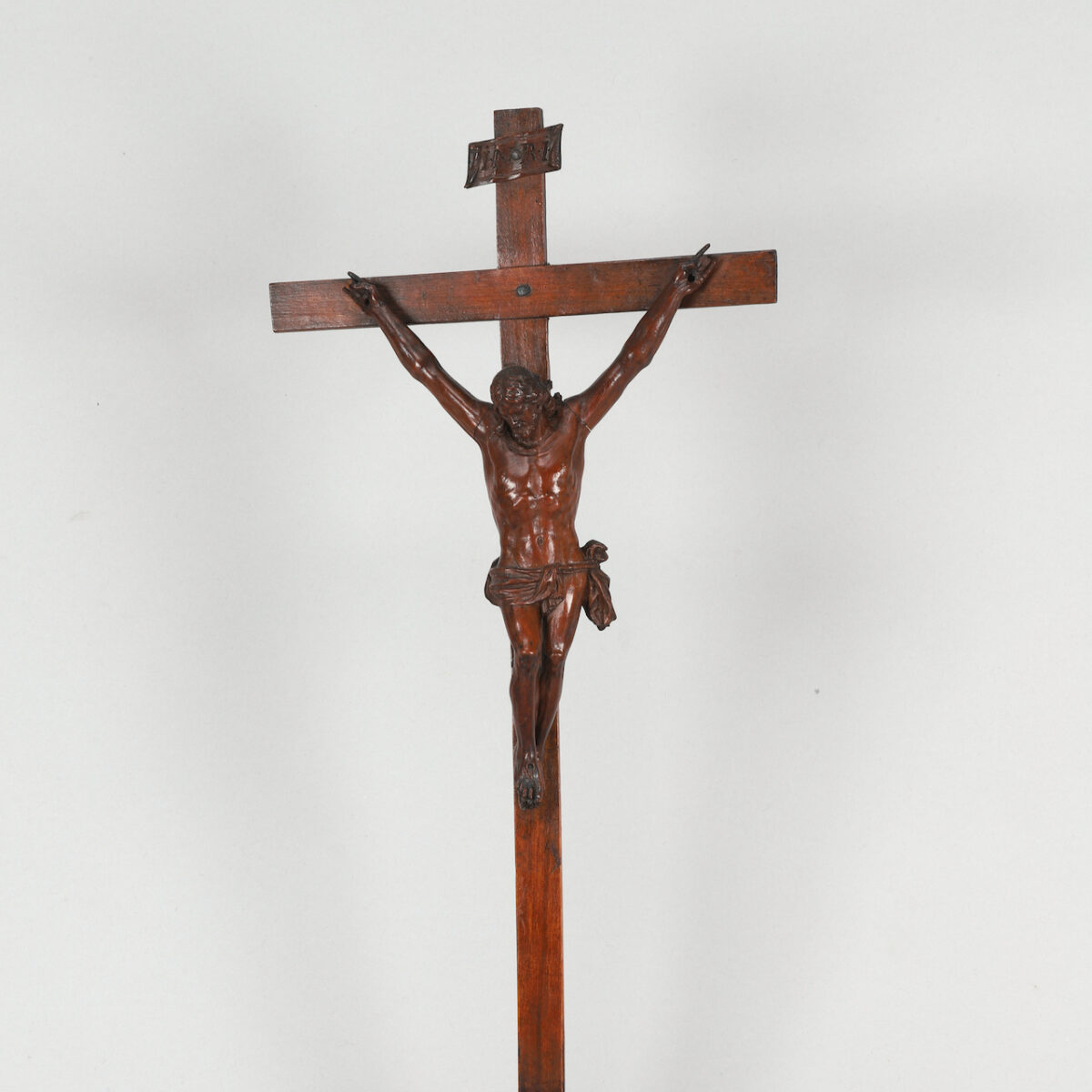 Crucifix sculpté en bois de Sainte-Lucie, Lorraine, milieu du XVIIIème siècle