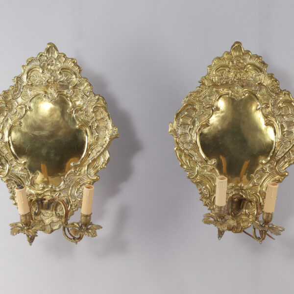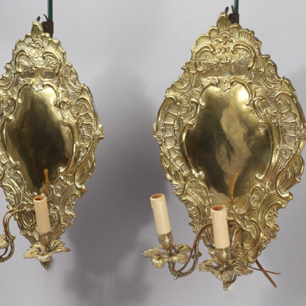 Une paire d'appliques réflecteurs, laiton repoussé, vers le milieu du XVIIIe siècle, Pays-Bas ou Allemagne.