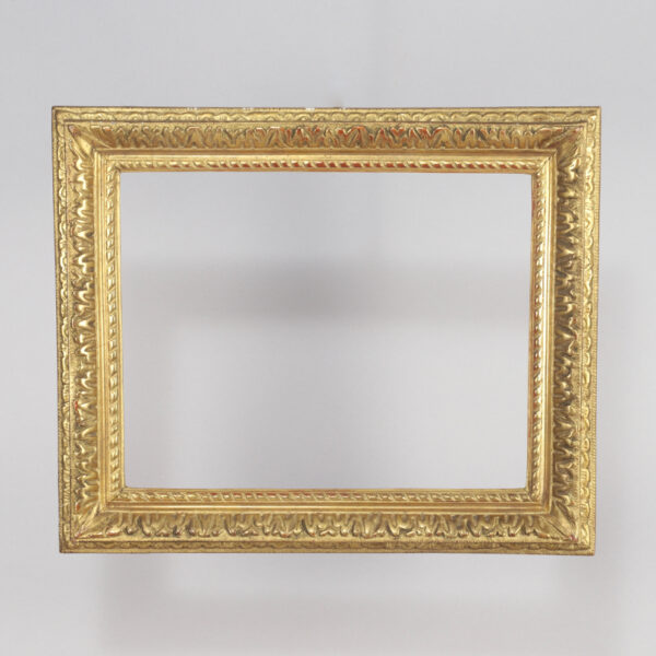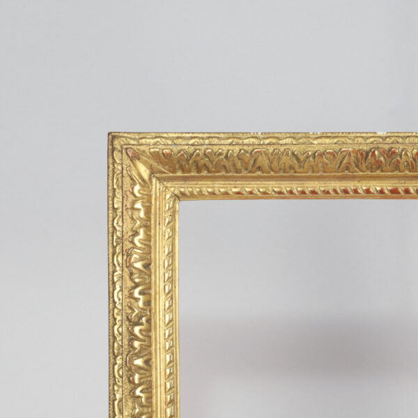Un cadre Louis XIII, bois sculpté doré, XVIIIe siècle.