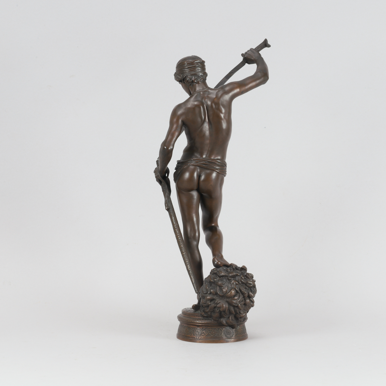 Bronze with brown patina edition of sculptor Antonin Mercié’s David cast by Maison Barbedienne.