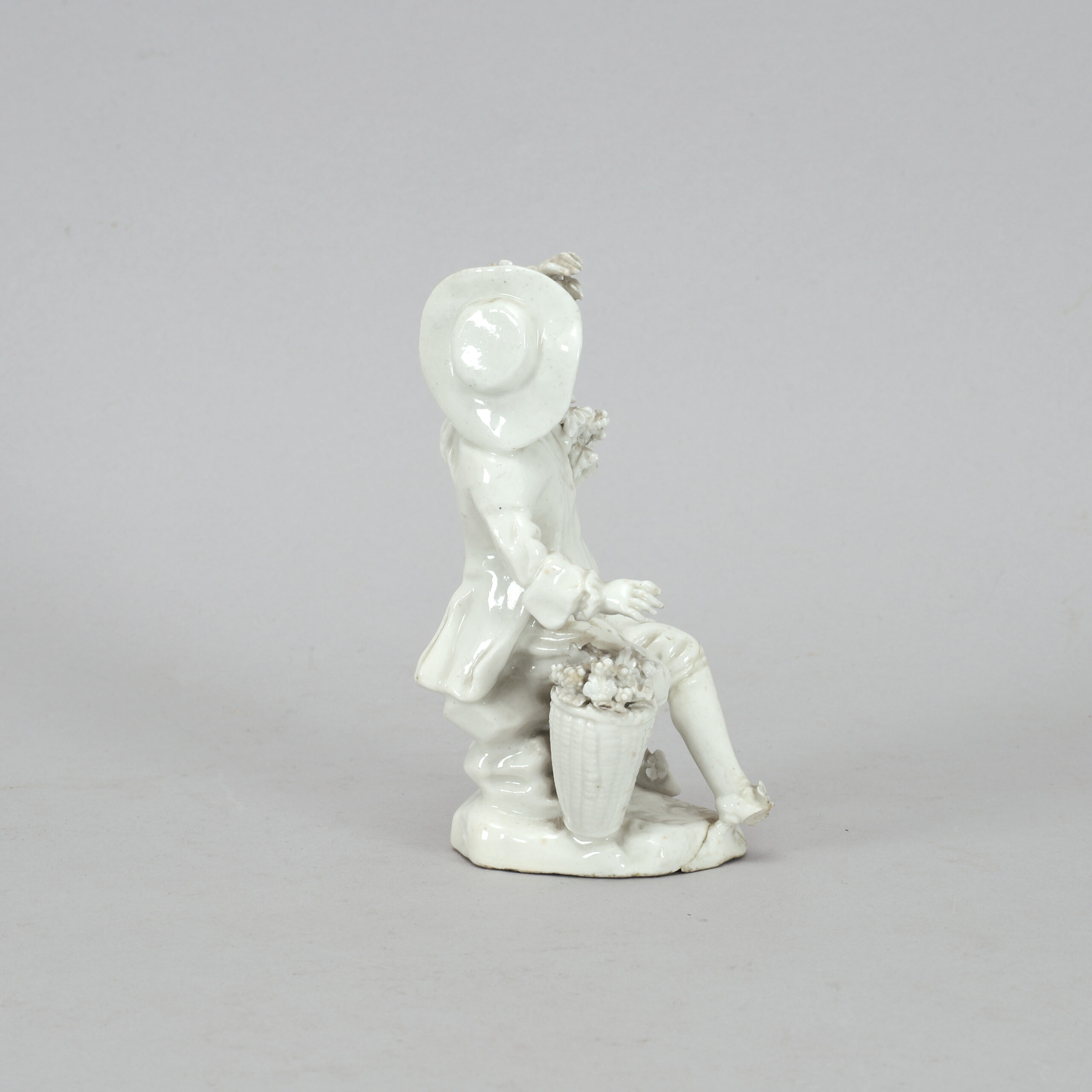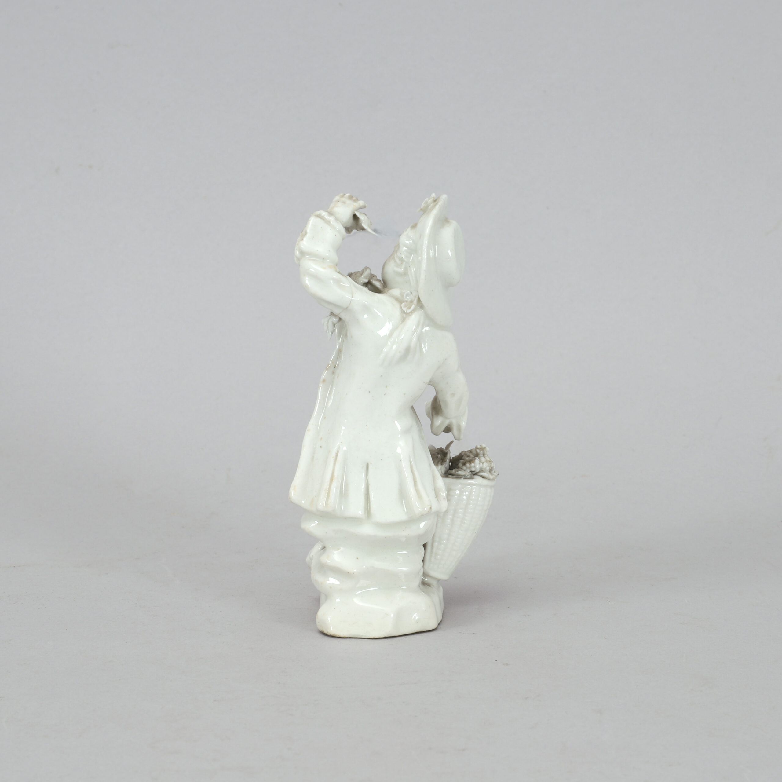 A white-glazed porcelain figurine depicting a young grape picker, 1770-1780