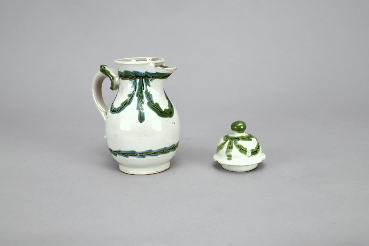 A bachelor faience coffee pot, Mosbach manufacture from the 1780s to 1790. This coffee pot having belonged to a service, it is the only one that would remain of it.