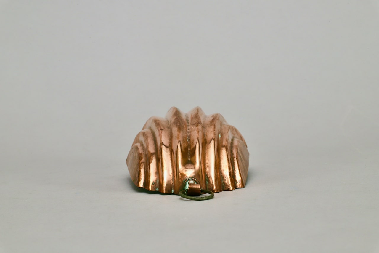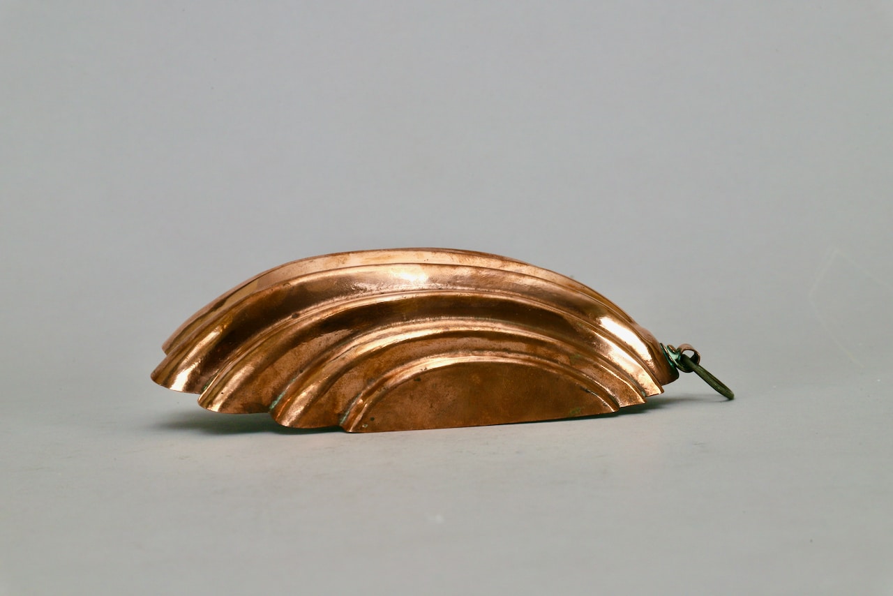 A copper madeleine mold from the first half of the 19th century. The piece of copper is hammered with a hammer to give its shape.