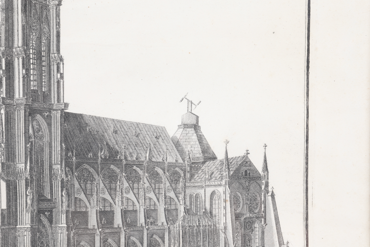 An engraving by François Jacques Oberthür, view of Strasbourg Cathedral, 1819.