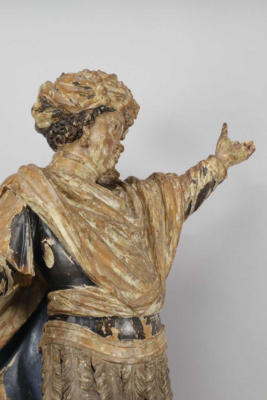 Statue of Balthazar in polychrome carved wood, late 17th century