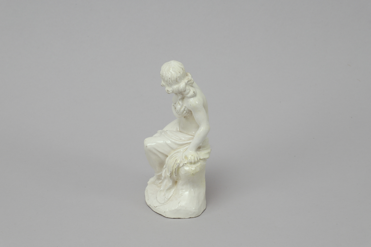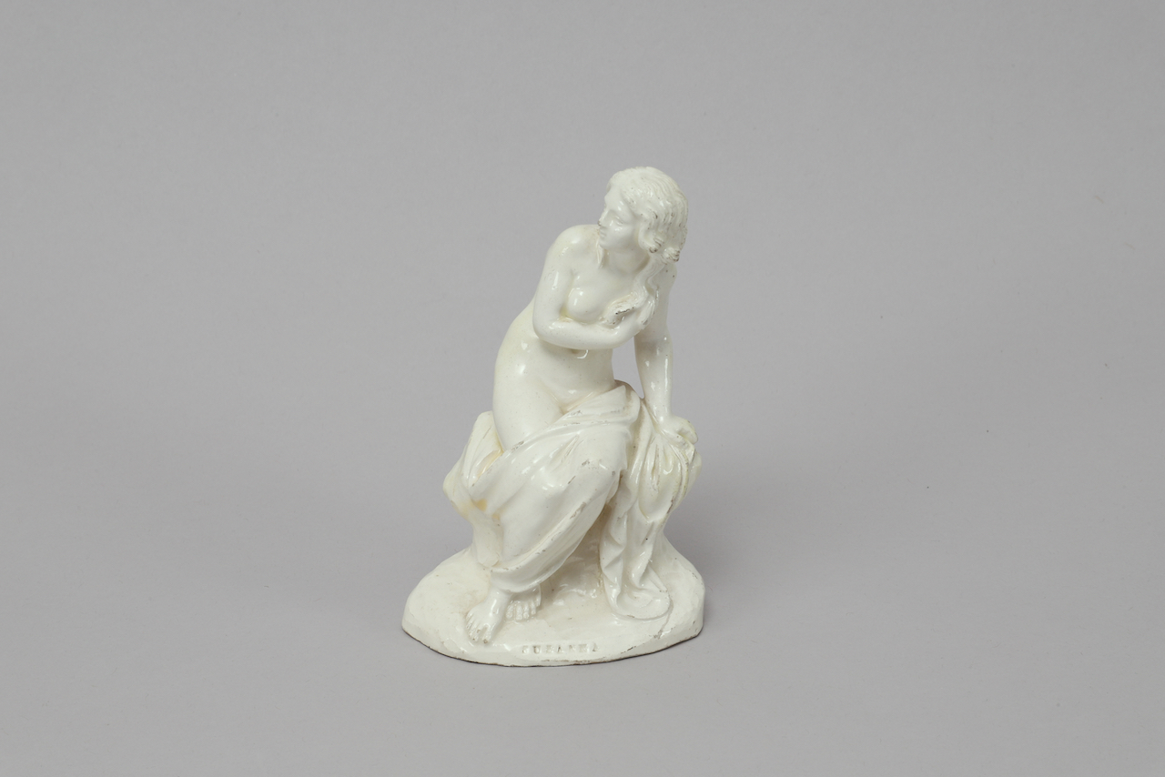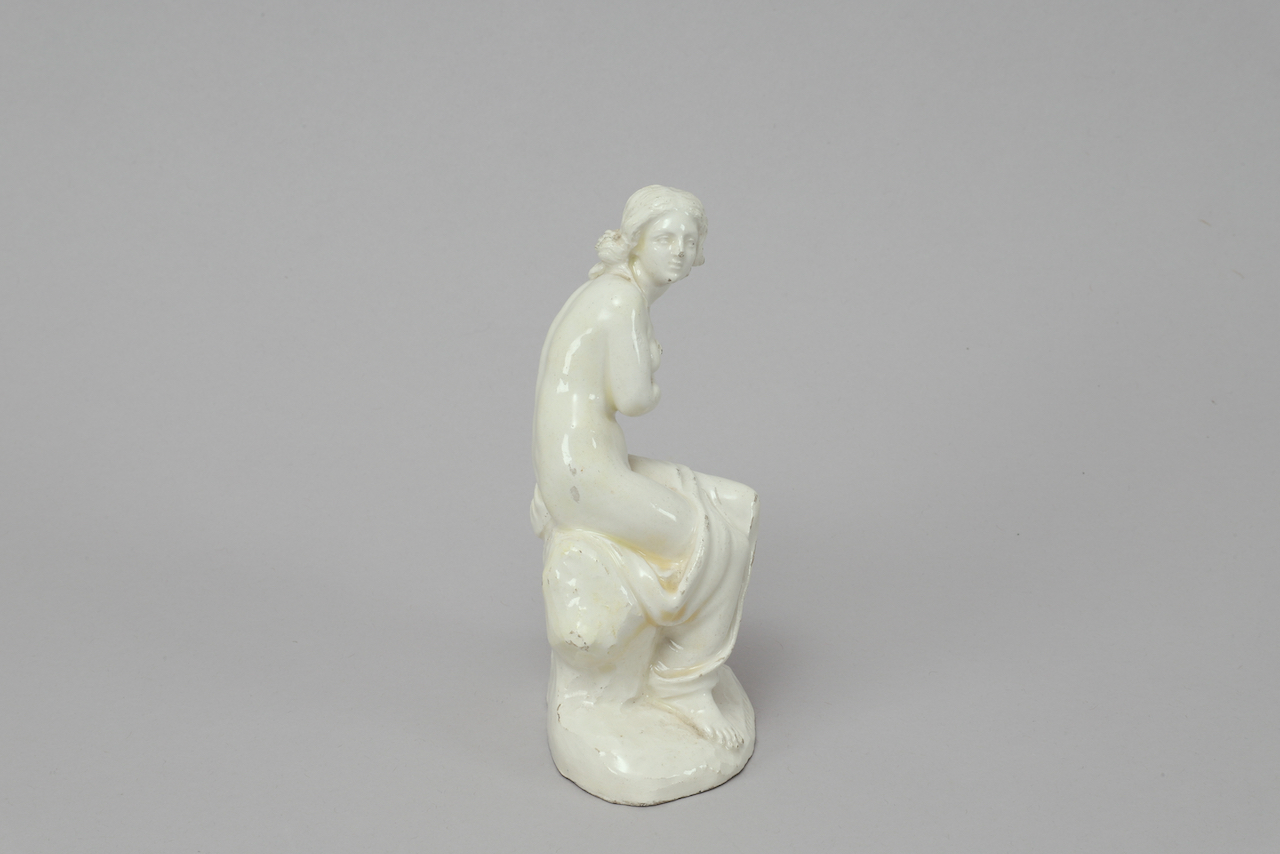 A Neapolitan creamware statuette, circa 1820, depicting a young woman likened to “Susanna and the two old men” or “Susanna at the baths” (Book of Daniel. chap. 13).
