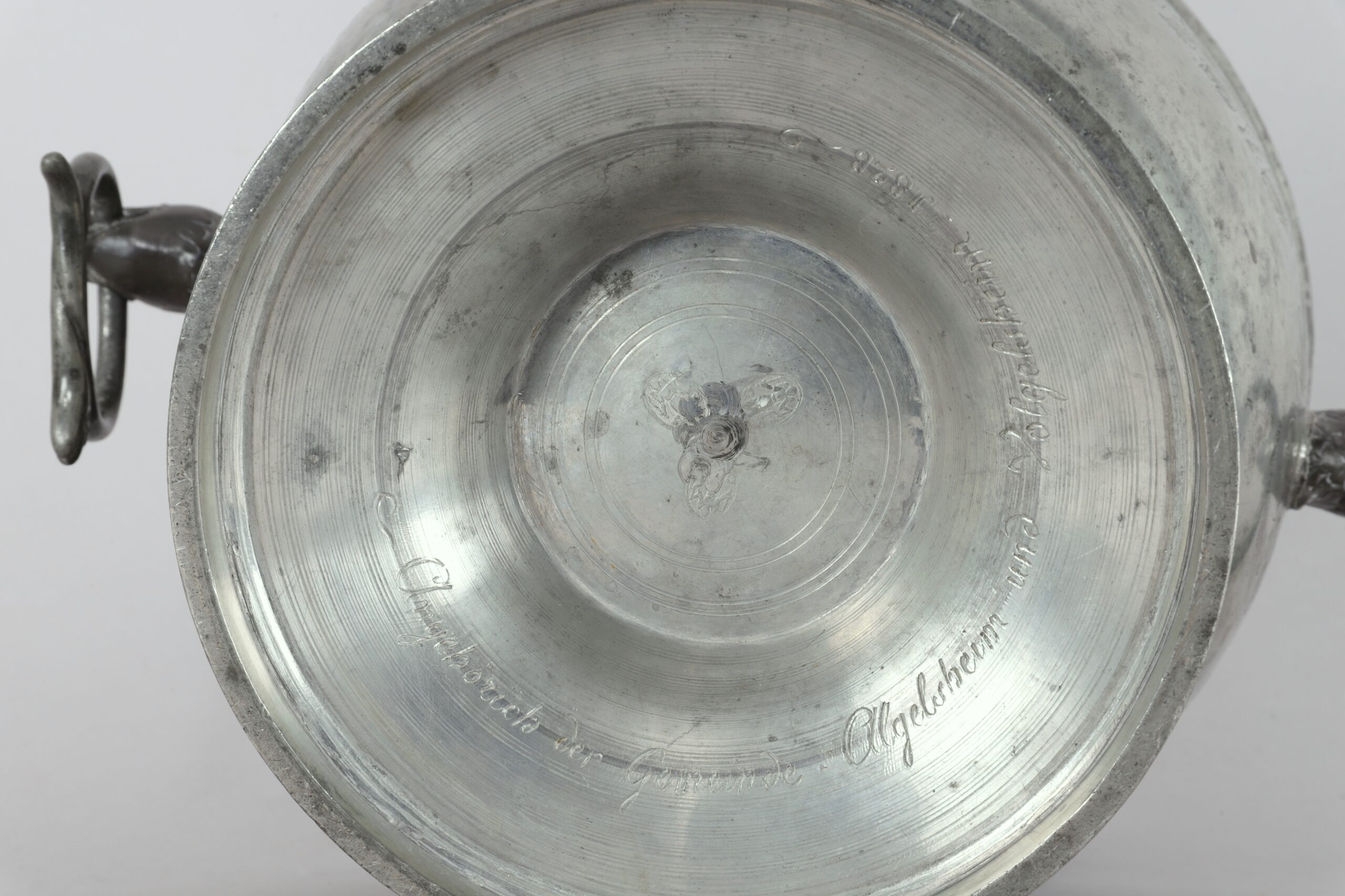 Un bassin de baptême en étain gravé, Christophe Weldner, vers 1828.