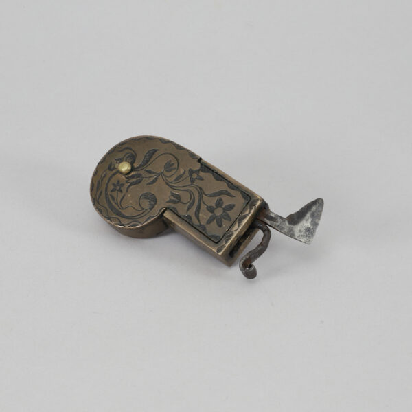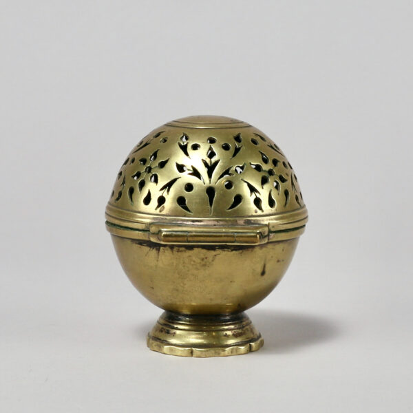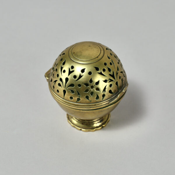 Une cuillère saupoudreuse en terre de pipe émaillé, fin du XVIIIe siècle